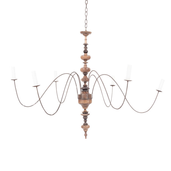 Six-arm fruitwood Italian chandelier, hand-carved and turned from fruitwood,...