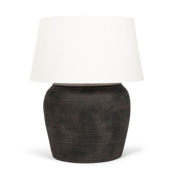 Pottery Vessel Lamp with Linen Coolie Shade