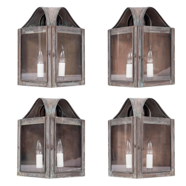 Set of Four Verdigris Green and Copper Wall-Mounted Lanterns