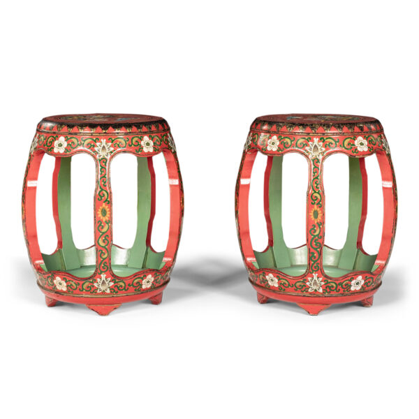 Pair of Vintage Chinese Lacquered and Painted Garden Seats