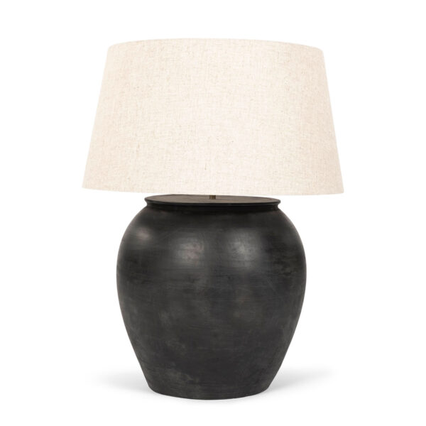 Custom Table Lamp from Black Turkish Pot with Linen Shade