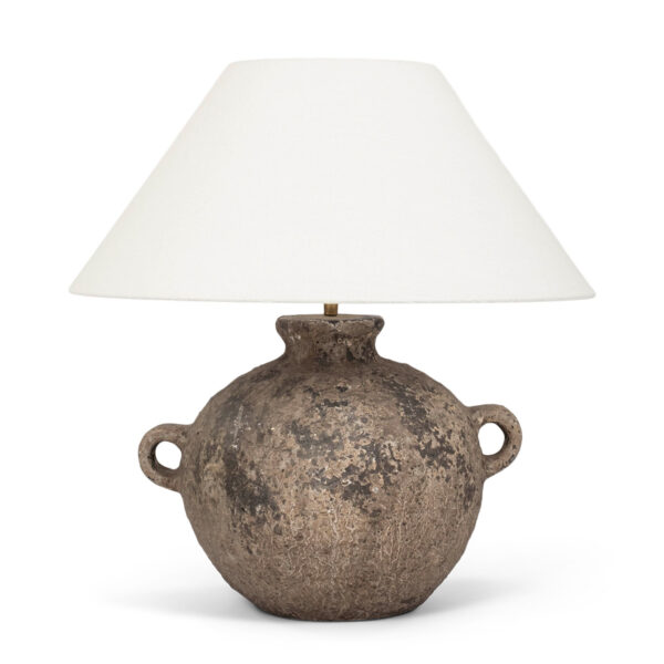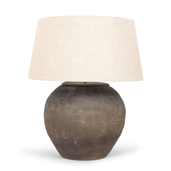 Pottery Vessel Lamp with Linen Coolie Shade