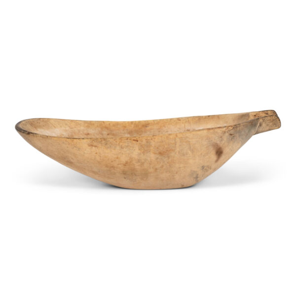 Rustic branch shape Swedish dugout bowl circa 1780 – 1819. Nice dry, pale...