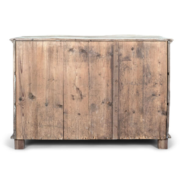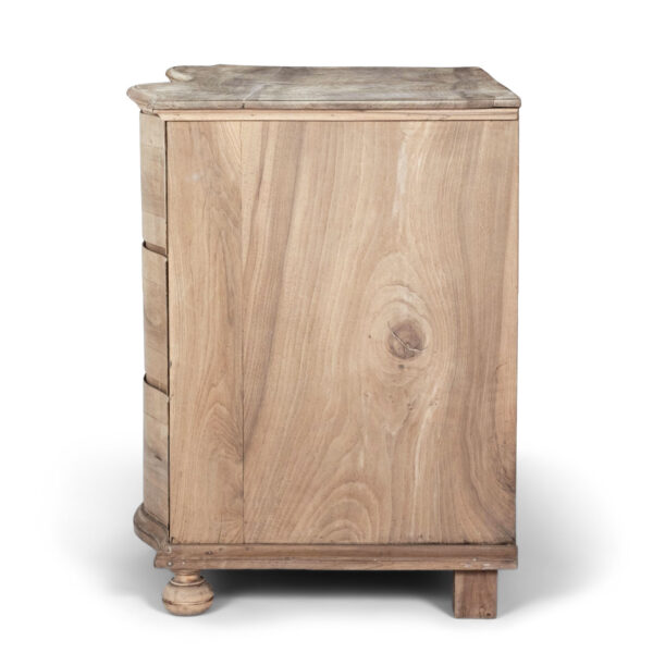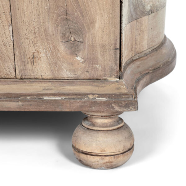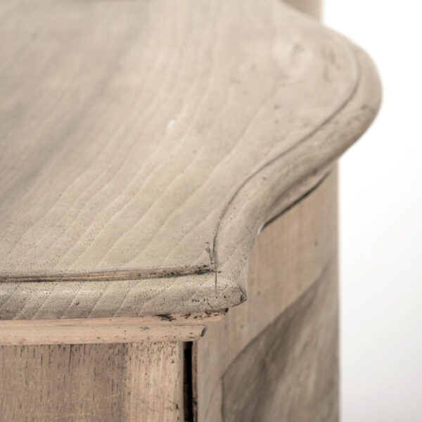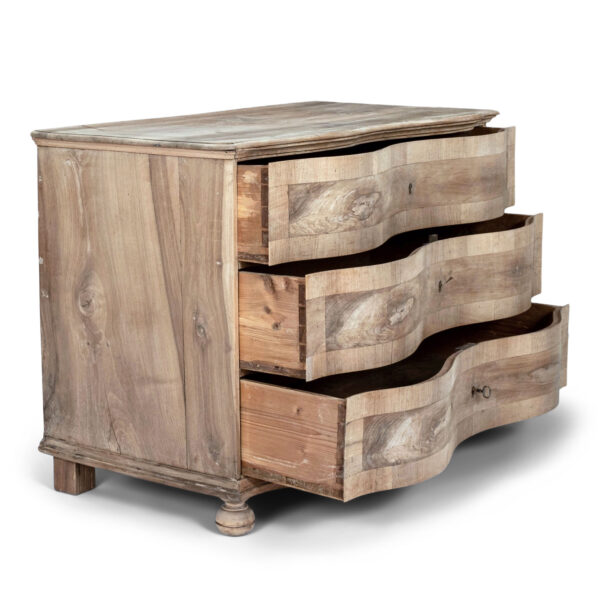 18th century bleached walnut serpentine commode. Three-drawer Italian commode. Constructed in walnut. Mortise and tenon joints and dovertailed drawers.