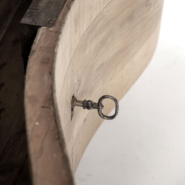 Condition details: Wear consistent with age and use. Bleached walnut. Mortise and tenon construction. Dovetailed drawers. Locks and key. Sturdy.