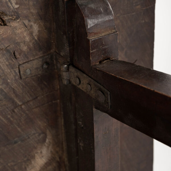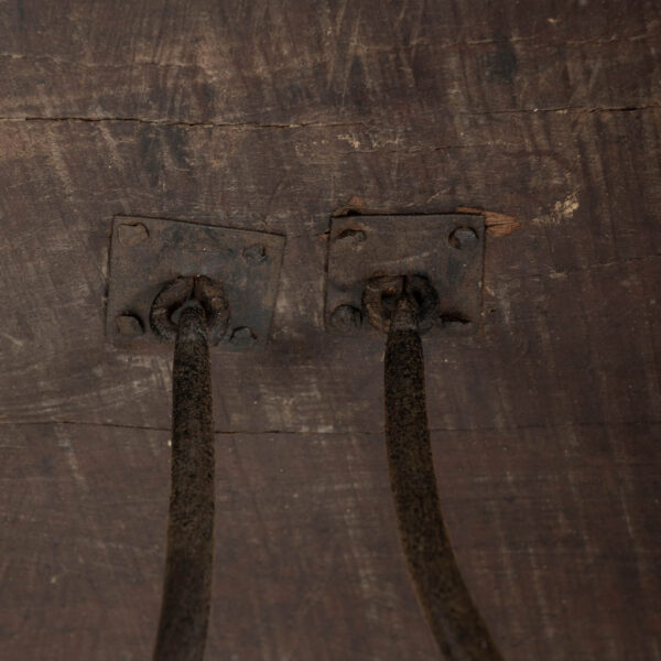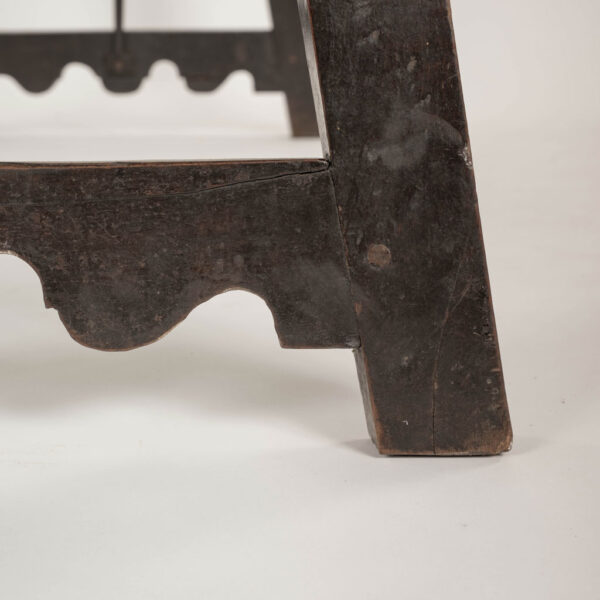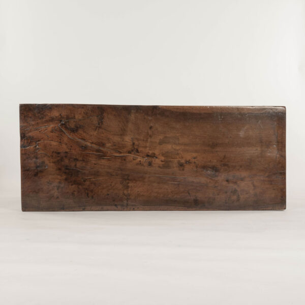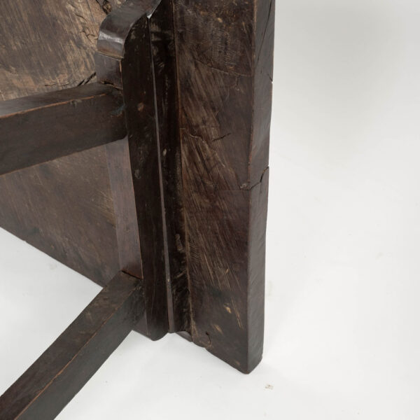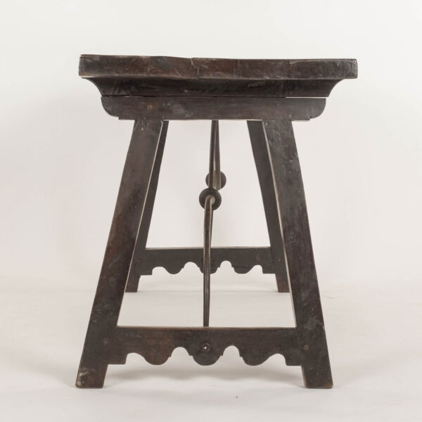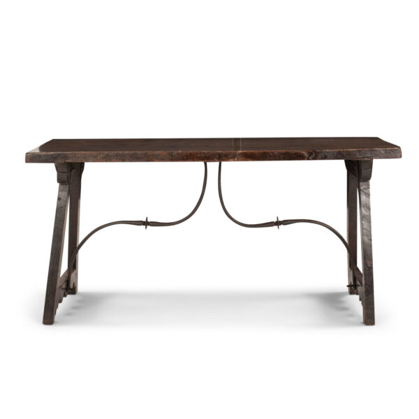 18th century Italian walnut console with iron trestle. Beautiful thick single plank top.