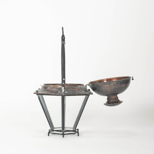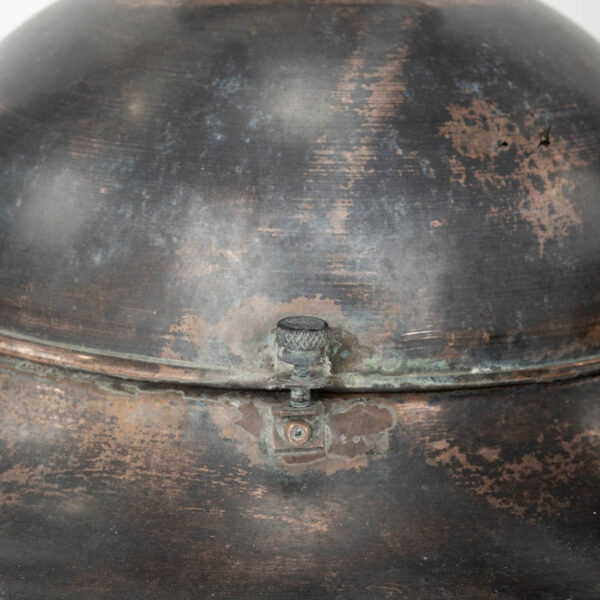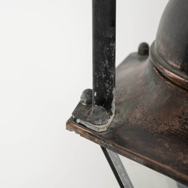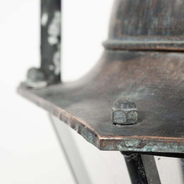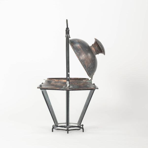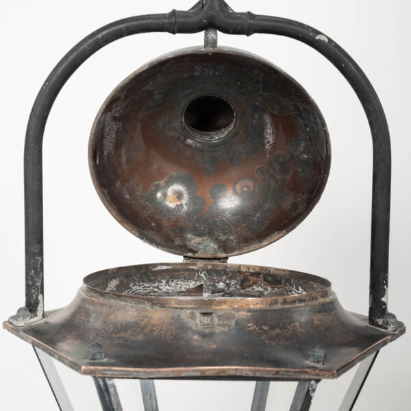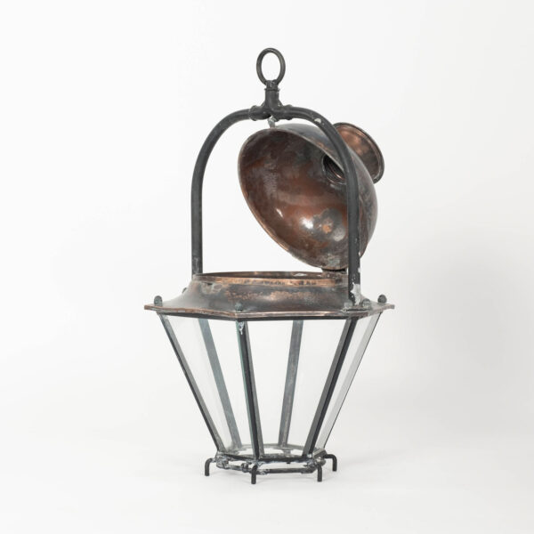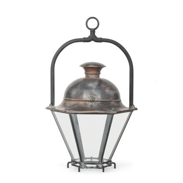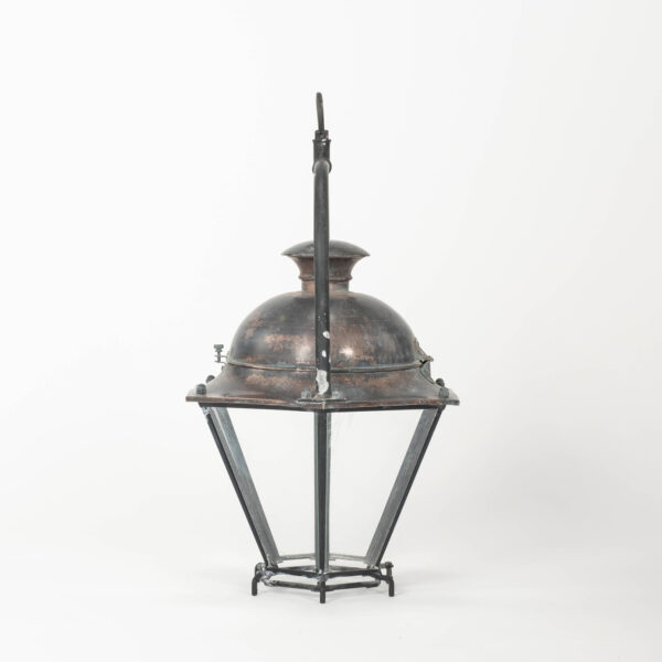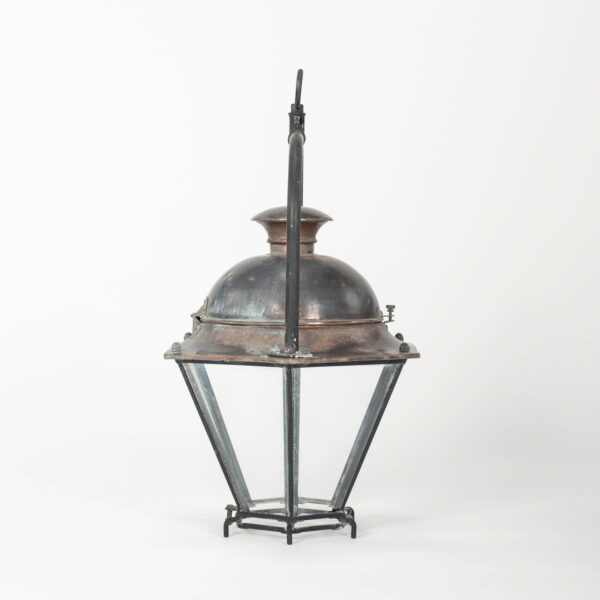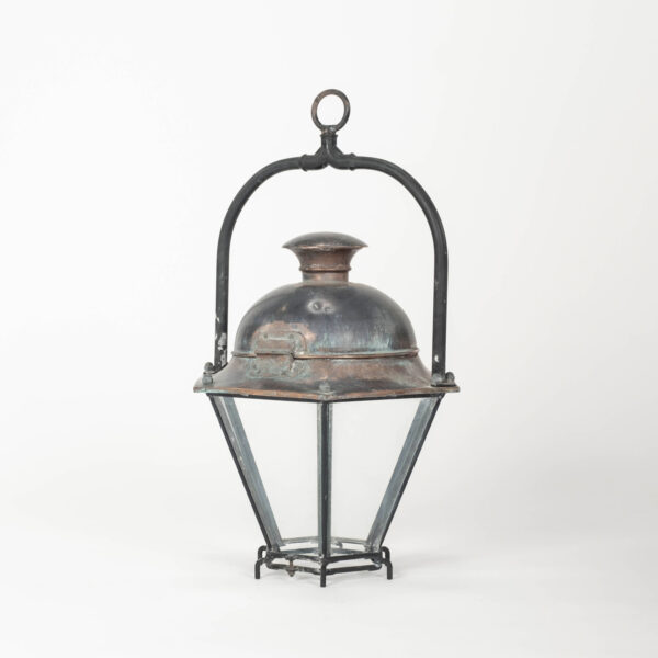 Antique hexagonal glass paneled domed copper lantern. Unwired. Beautiful natural patina. Late 19th century.