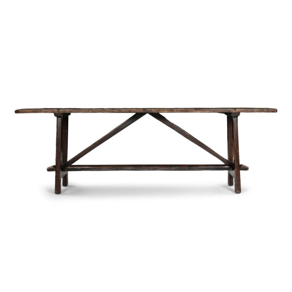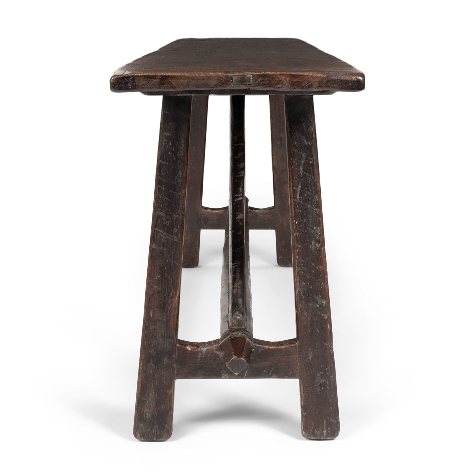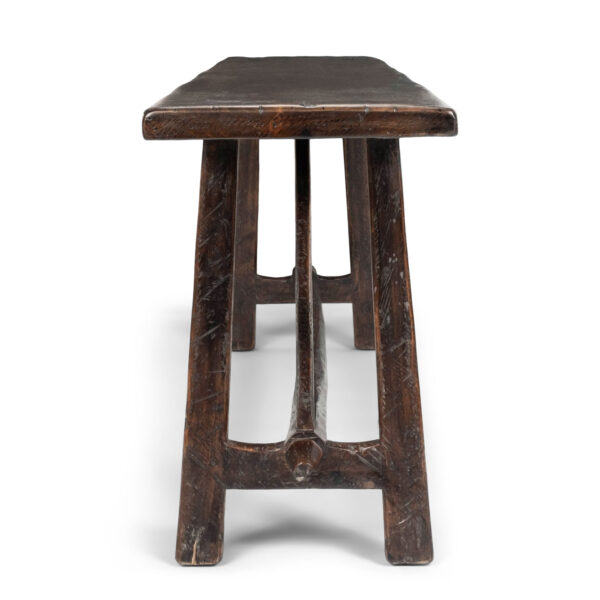 Italian hand-carved walnut console with beautifully shaped trestle.