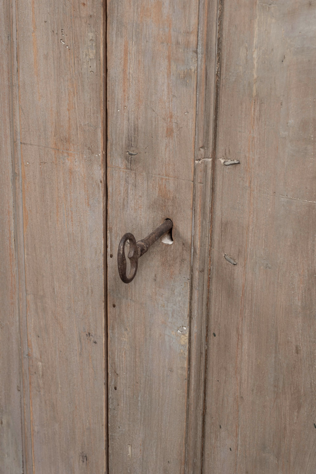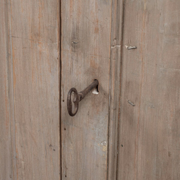 • Condition details: Wear consistent with age and use. Losses to painted finish. Outer layers of paint are not original. Surface edges are smoothed and rounded from centuries of natural wear and use. Old iron 'staples' in panels of doors to prevent the common problem of panel splitting and separation. Sturdy, stable. Working locks and key.