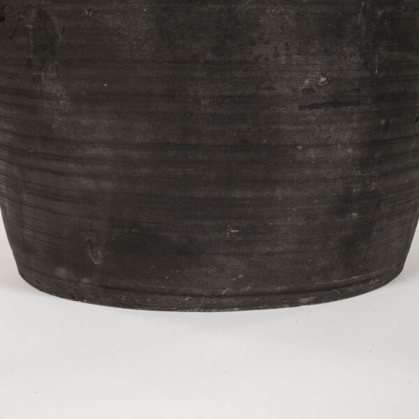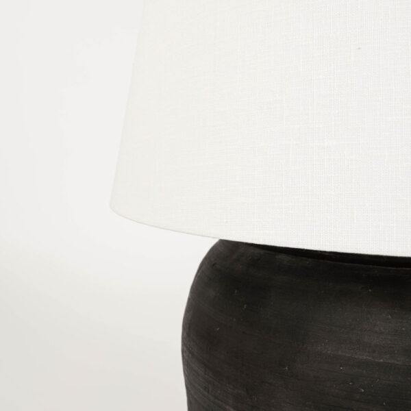 Large Matte Black Pottery Lamp with Linen Drum Shade