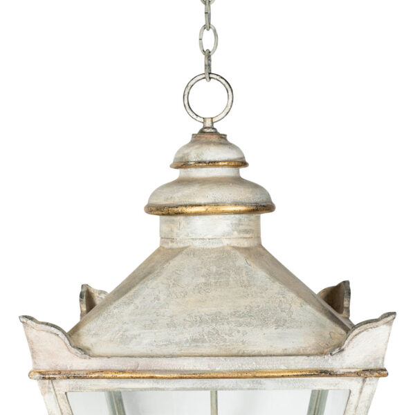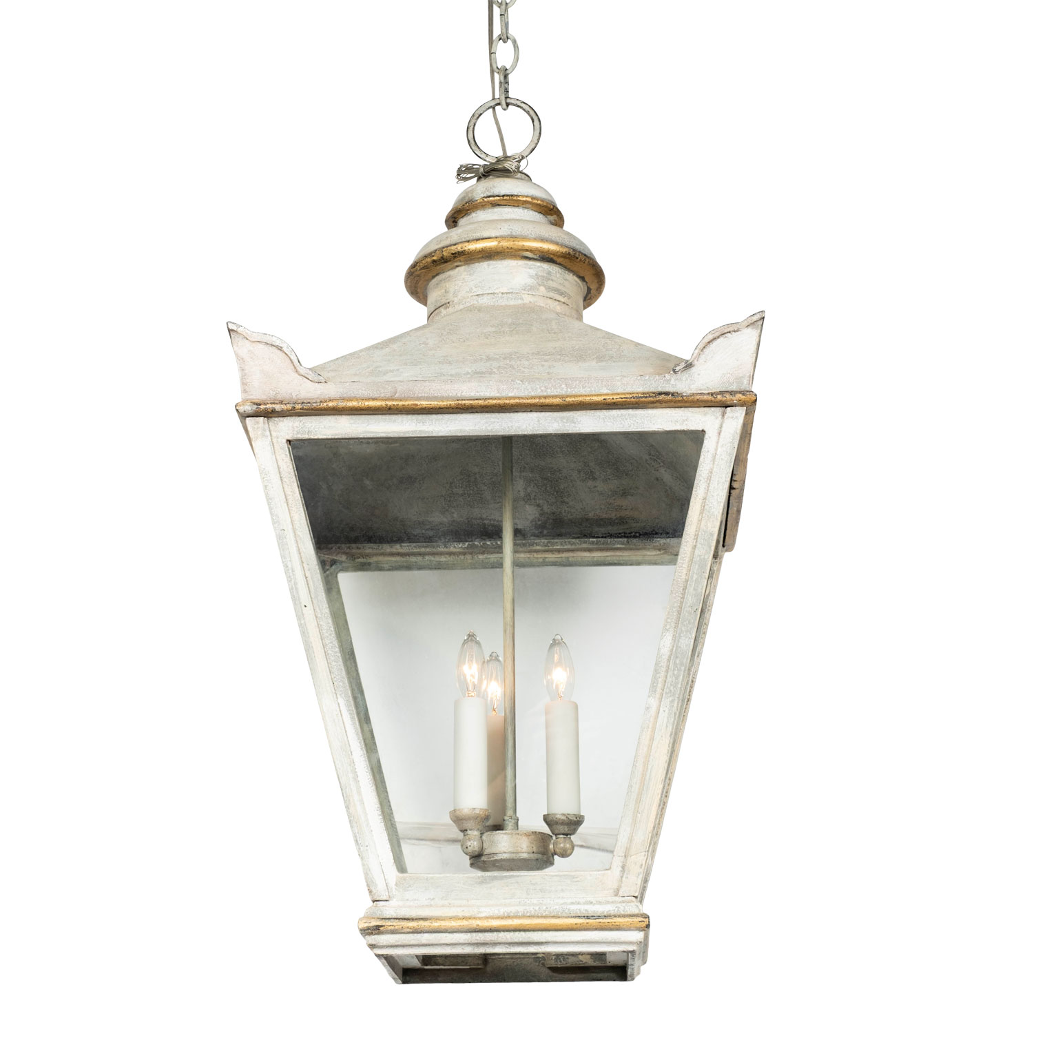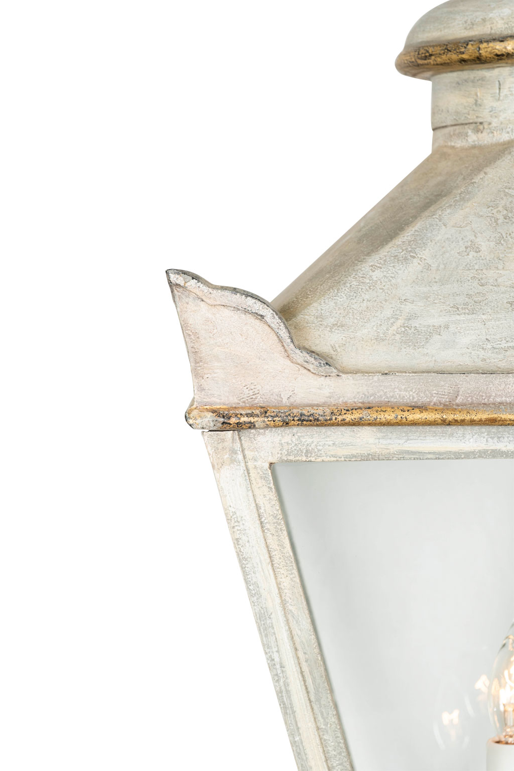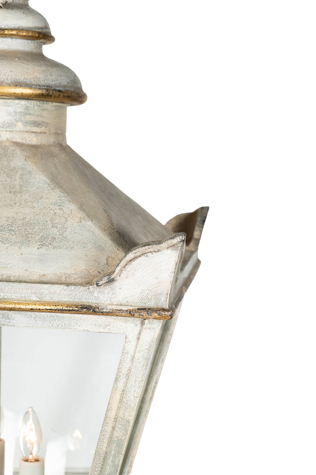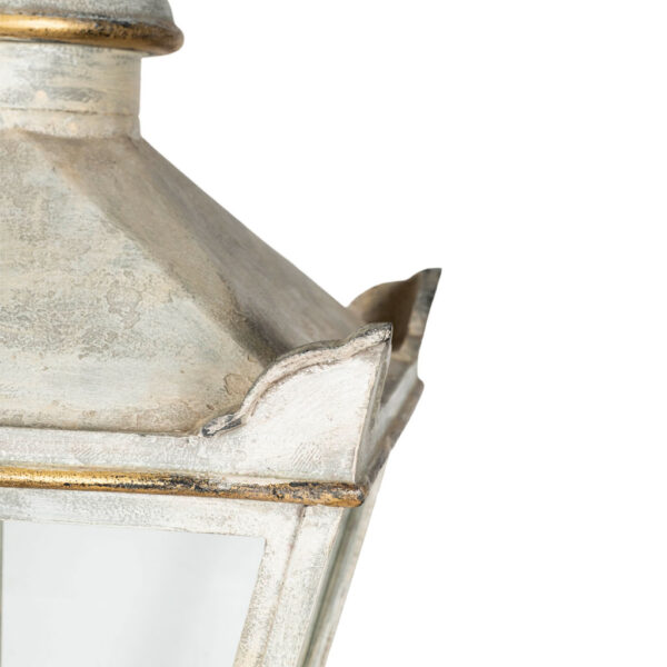 Light gray painted iron lantern with gilded decoration, circa 1900, France.