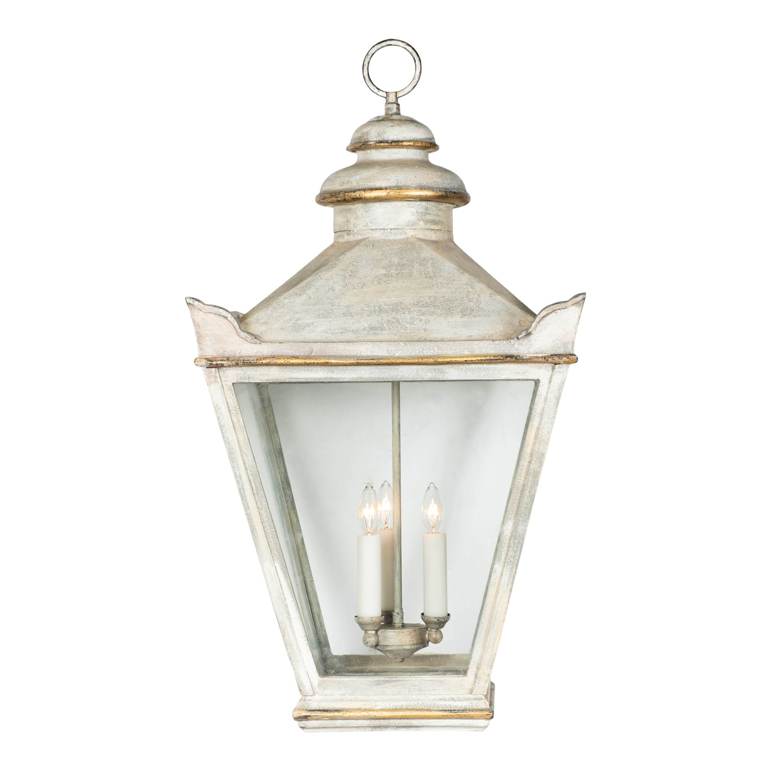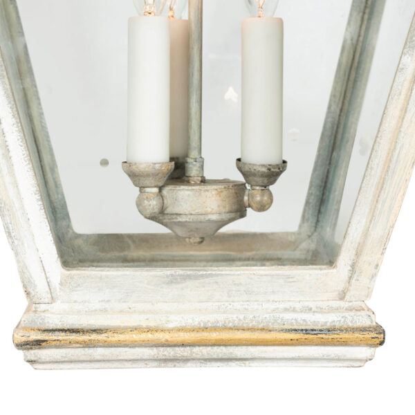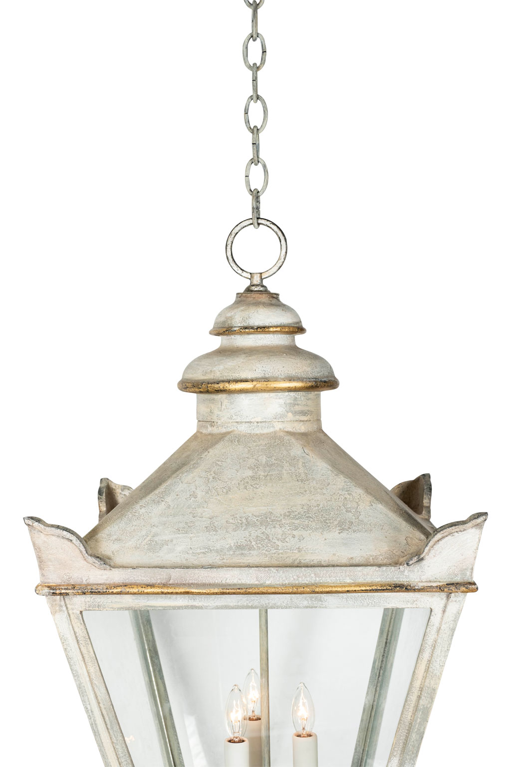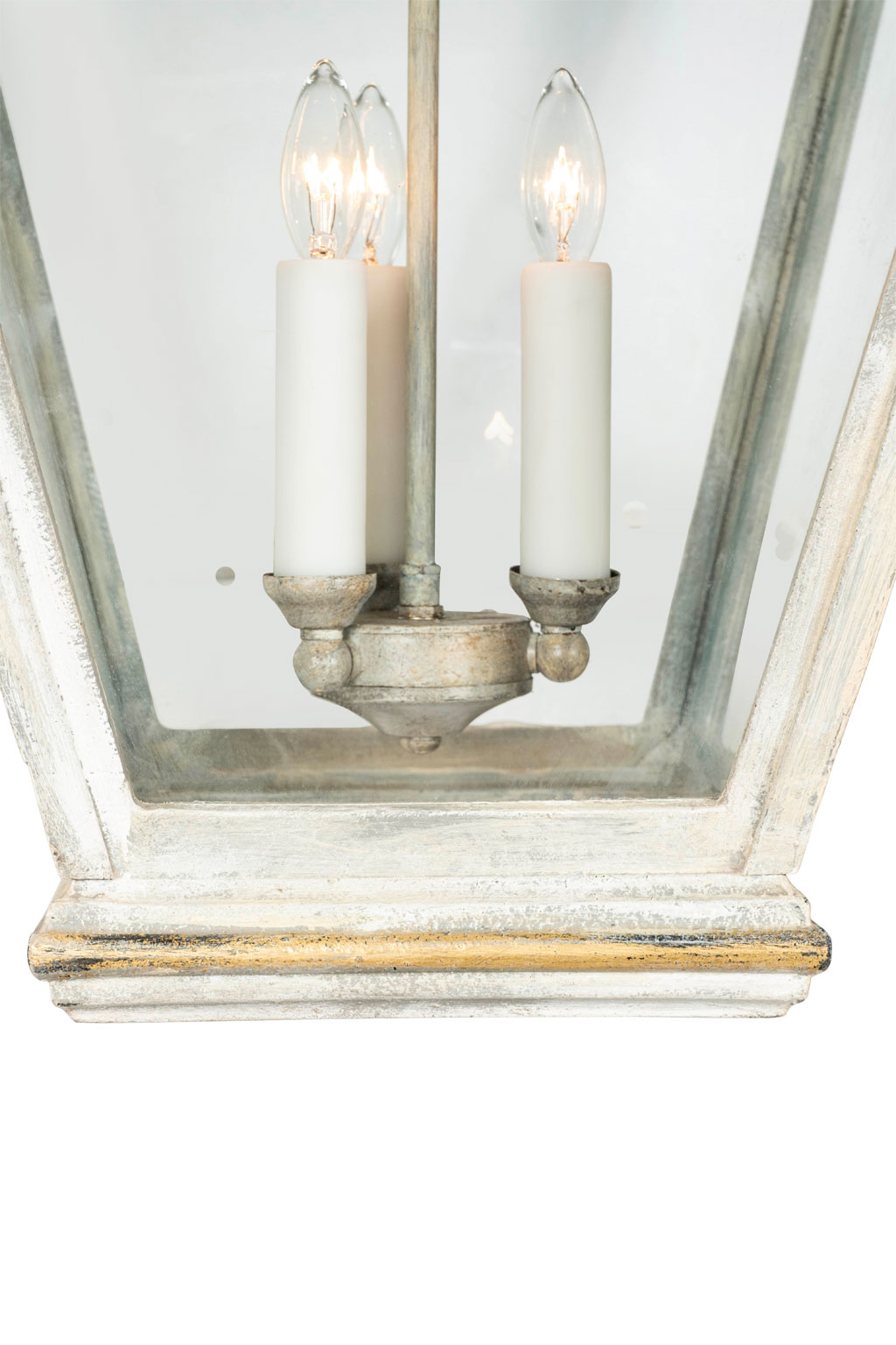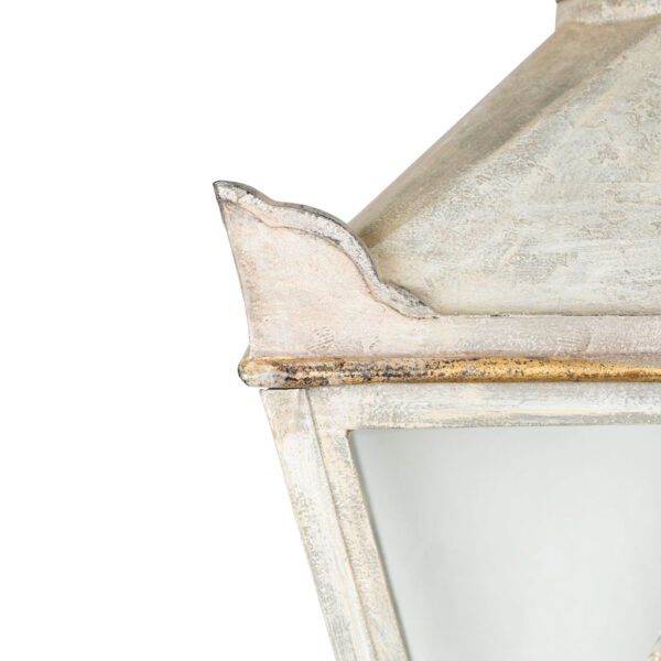 Light gray painted iron lantern with gilded decoration, circa 1900, France.