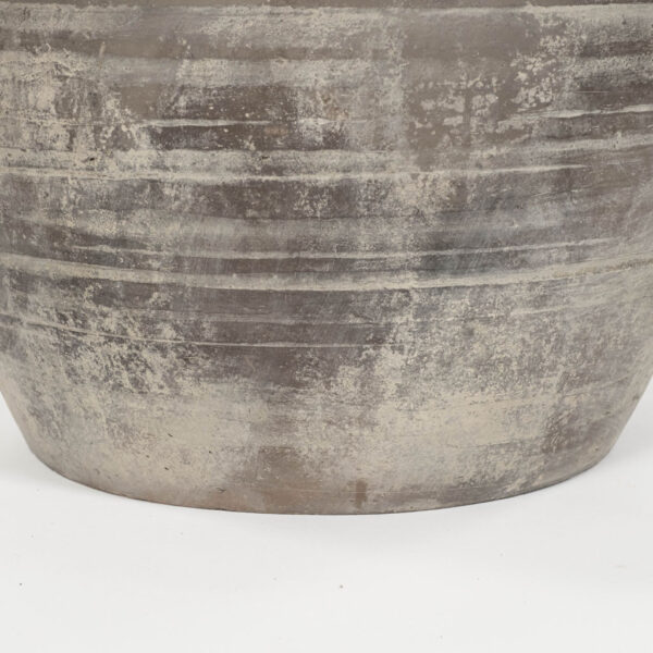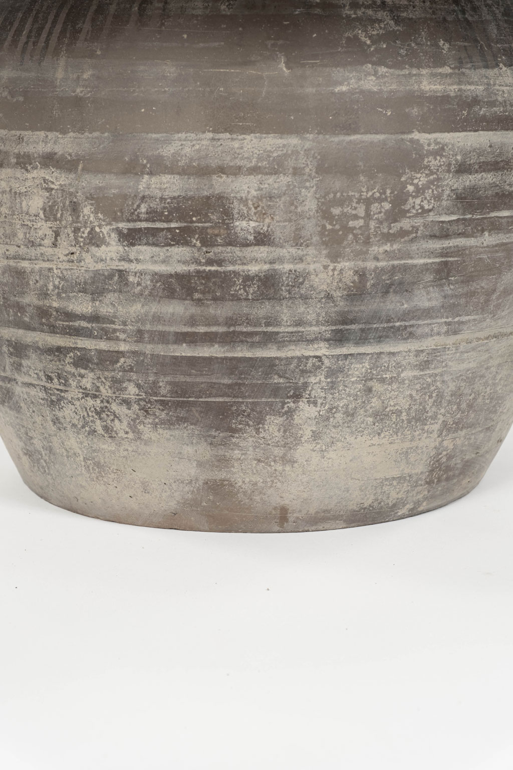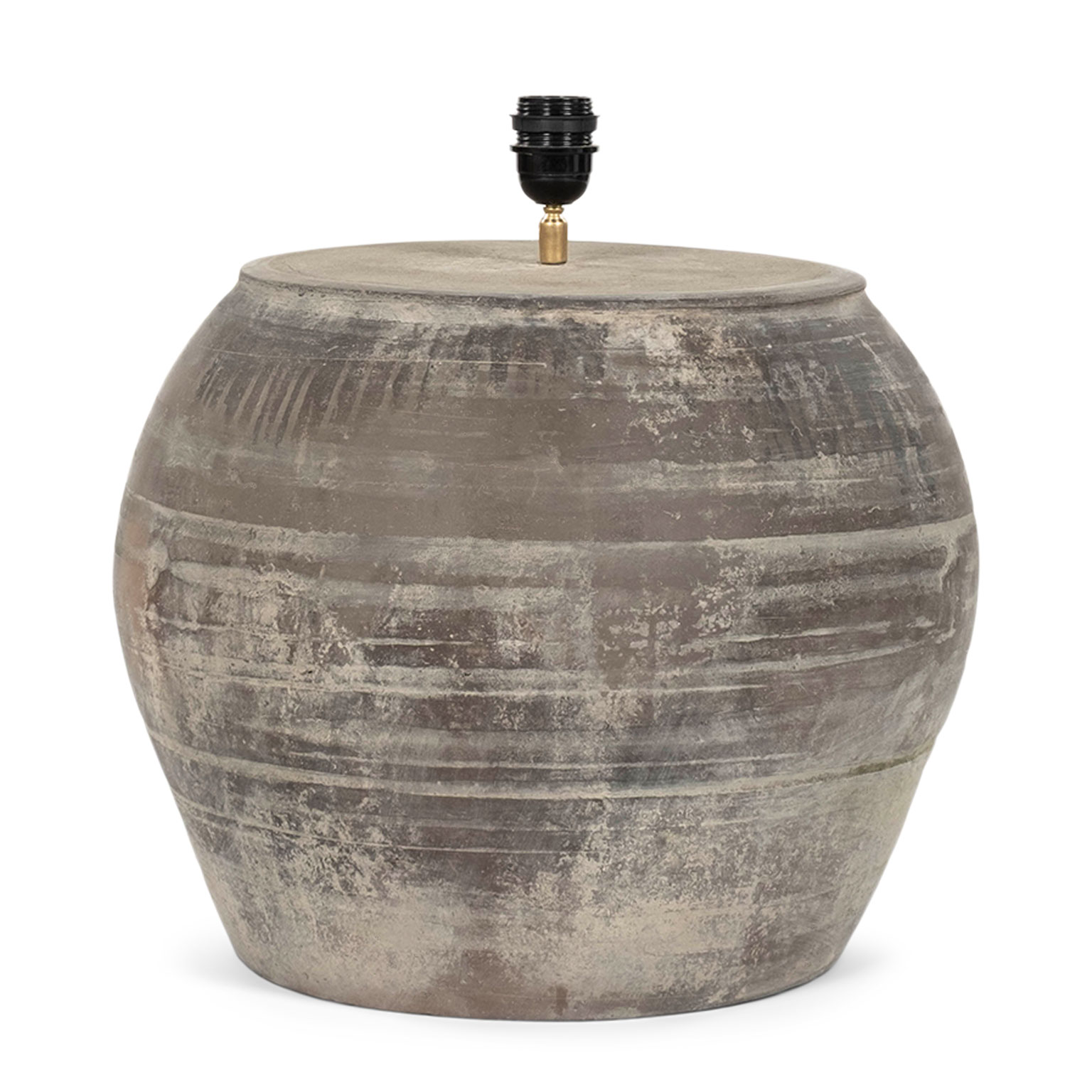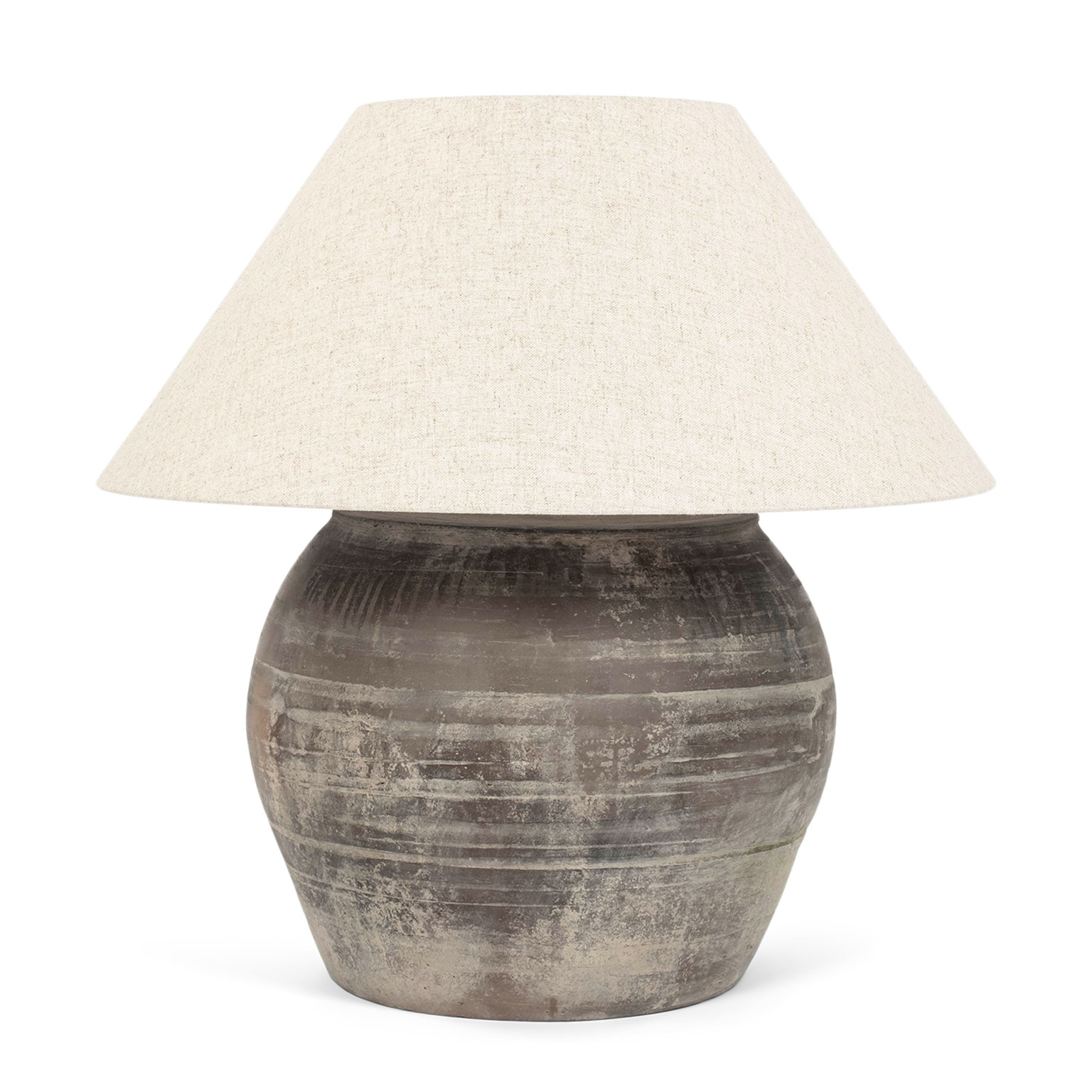 Matte black pottery table lamp with linen shade. Newly wired for use within the USA with line switch.