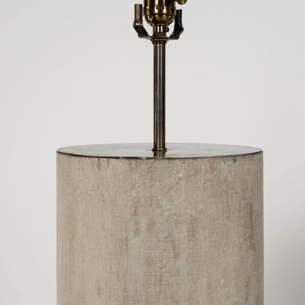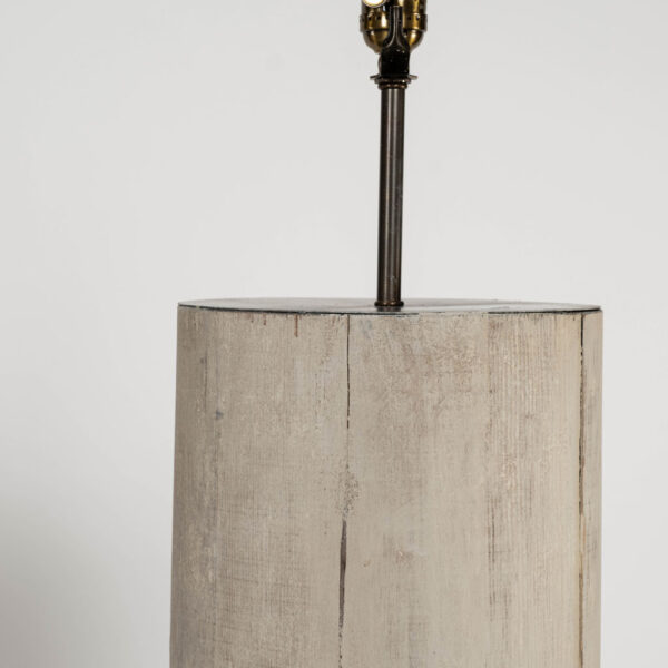 • Condition details: Wear consistent with age and use. Circa 1880-1909 wooden architectural columns modified as custom floor lamps. Remnants of older layers of paint. Newly wired. Includes linen drum shades (listed dimensions include shades).