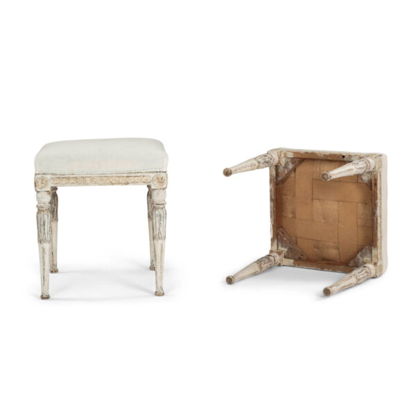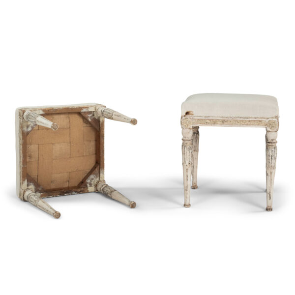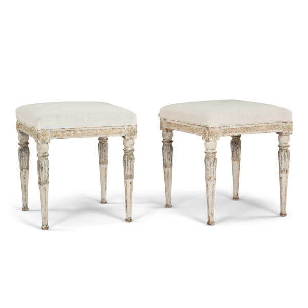 Pair of Gustavian white painted stools circa 1800. Sold together and priced $5,800 as a pair.