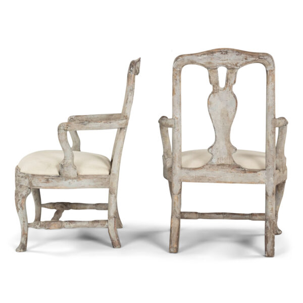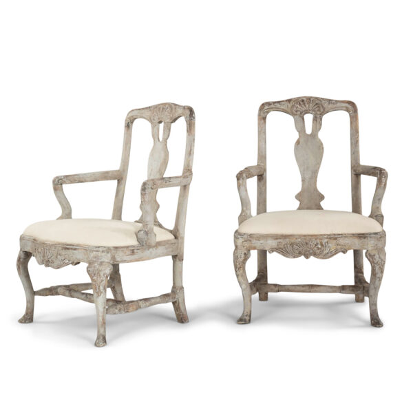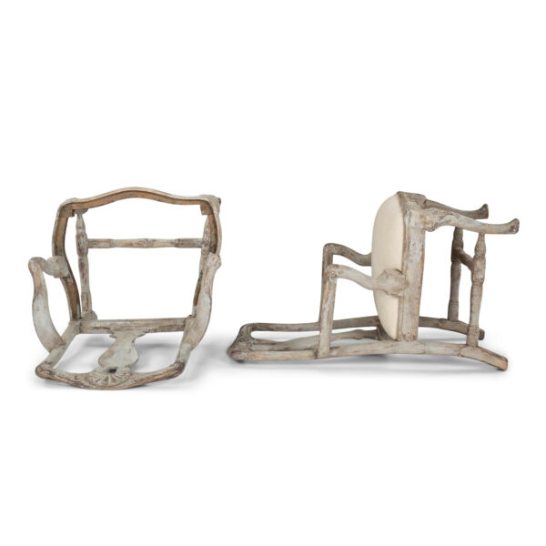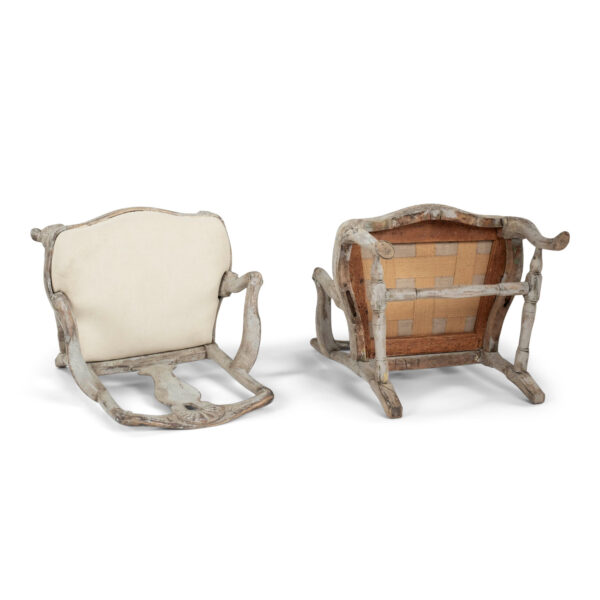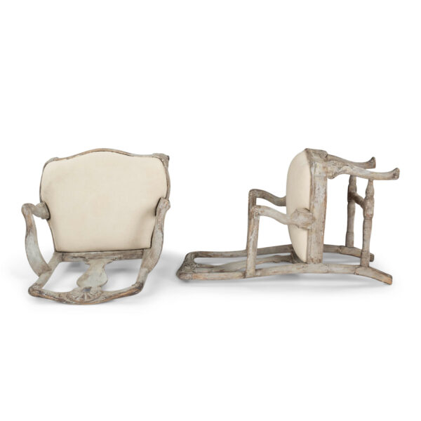Pair of painted rococo Swedish armchairs circa 1750-1779.