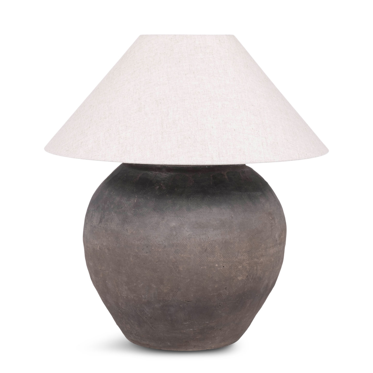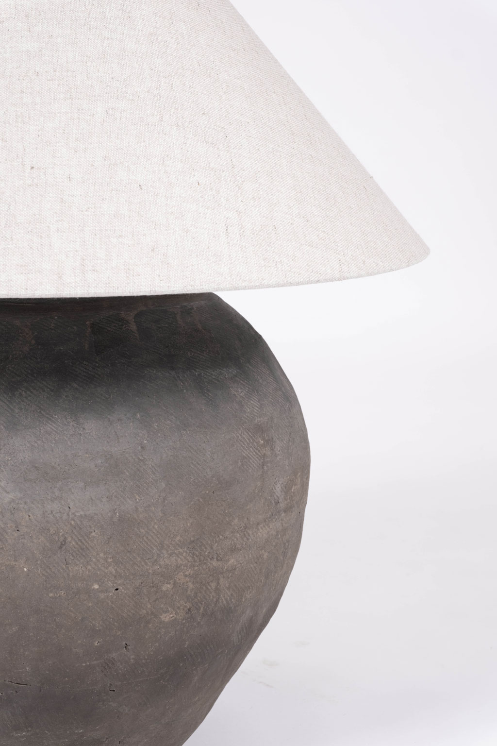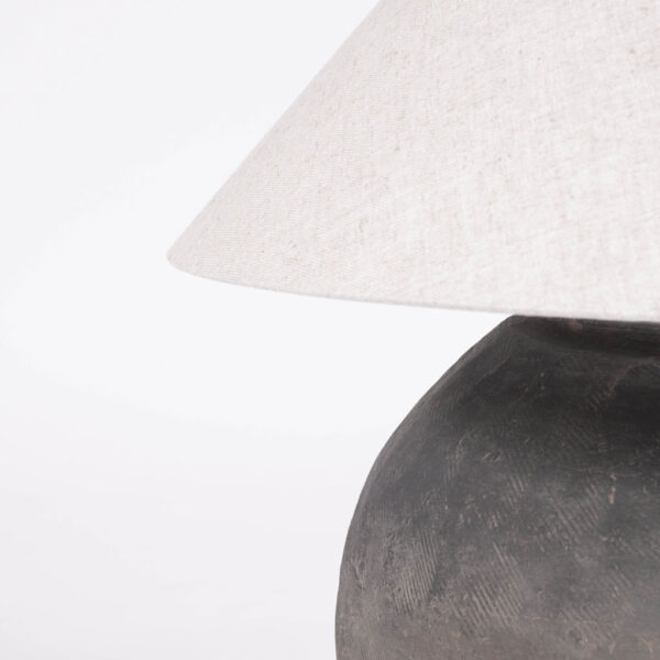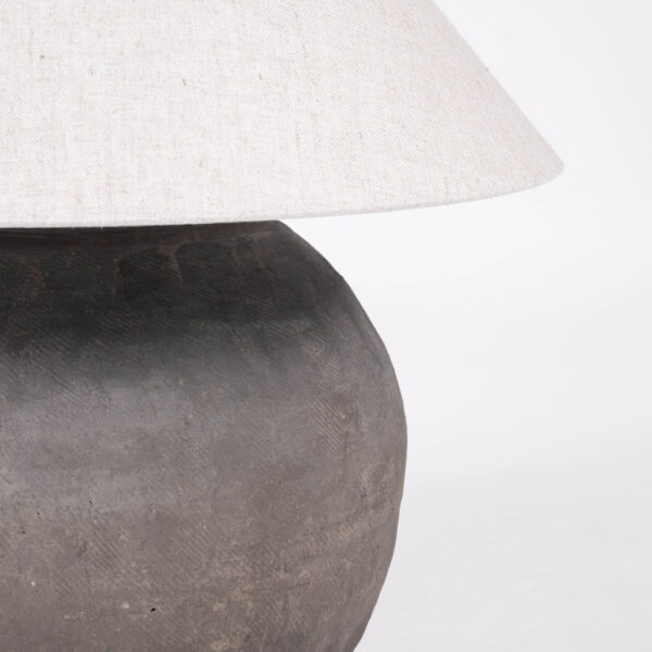 Pottery table lamp with linen shade. Newly wired for use within the USA with line switch.