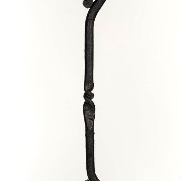 Rustic four-arm forged-iron chandelier circa 1940-1959, France.